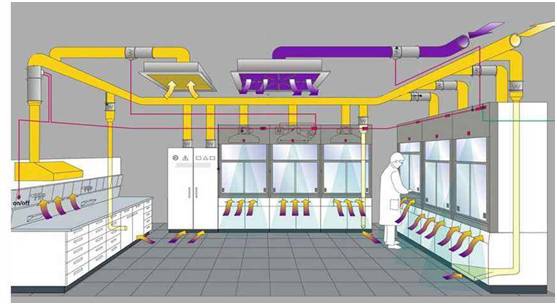 實驗室通風系統一般由通風設備、通風管道、消聲器、風機、控制系統組成。